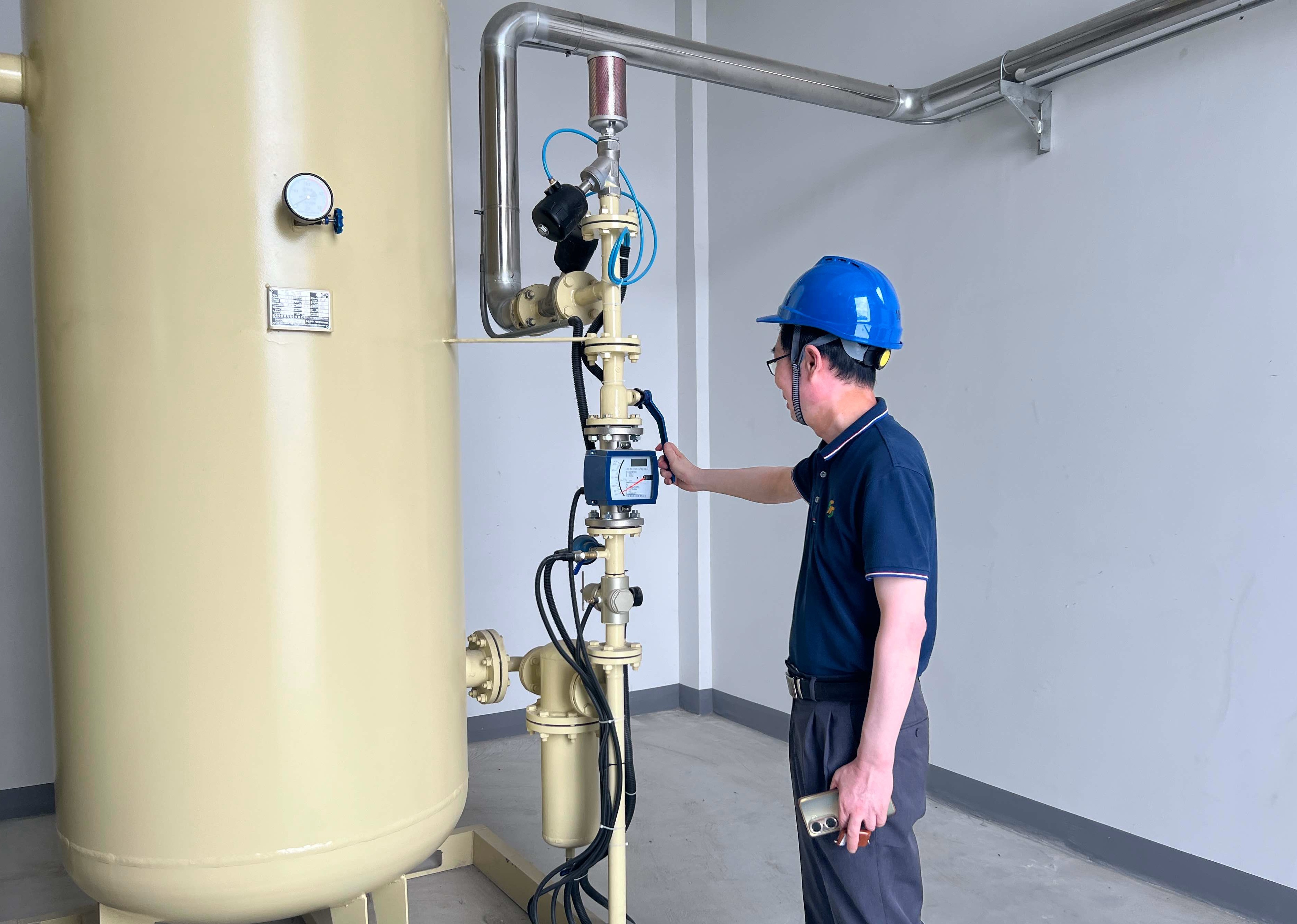 走进11号仓房,看似平平无奇的粮仓里实则大有玄机。原来粮食表面下20厘米铺设了环流管道,管道表面充满了密密麻麻的透气孔,当检测到害虫数量达到一定水平时,便会在仓库里释放经过分离提纯、浓度达99%以上的氮气,整整熏蒸28天从而达到抑制微生物、虫卵和害虫呼吸的作用,实现绿色杀虫。