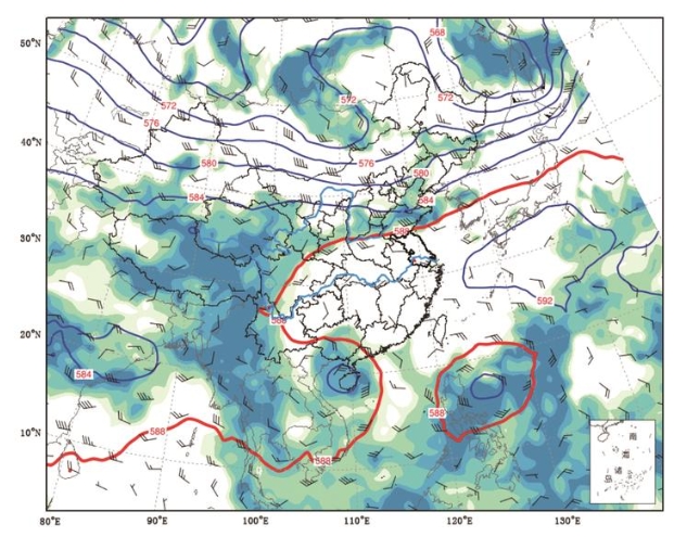 “在实际工作中,常以500hPa图上588位势米那条等高线,向北、向西扩展来表示副高的向北、向西推移,588线范围扩大即表示副高增强。”吴彩霞打开一张500hPa高空图,指着一条588线说,目前我市就处在被副高牢牢控制的区域。副高向西向北扩展,意味着控制范围将进一步扩大。但如果副高南退,我市刚好位于这条588线的边缘区域,天气就会变得不稳定。因为副高边缘大气比较活跃,加之水汽沿着副高边缘输送,更容易出现雷暴大风、短时强降水等强对流天气。