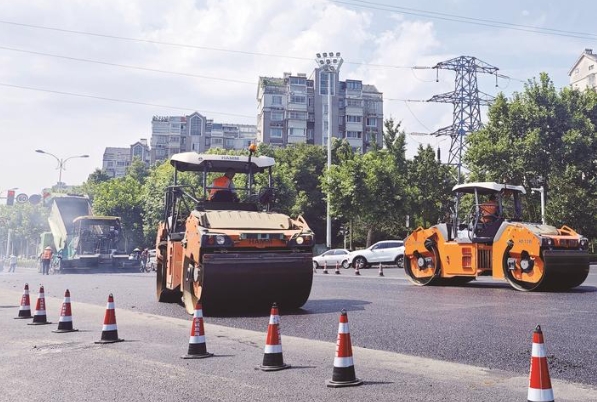 “夏季是沥青作业的黄金期,高温能有效减缓材料温度流失,现场摊铺碾压时应不低于120℃,才能保证路面的压实度、平整度。”市市政设施管理处设施管理二科施工员陈锃密切监测着沥青摊铺温度、厚度和碾压情况。他告诉记者,针对不同路段病害类型和受损程度的差异,长泰路大修采取了不同的维修策略,其中城北大道至永和路段为特重交通段,道路病害严重、承载力不足,采取注浆加固后铣刨两层沥青路面出新,永和路至永怡路段则为注浆加固后铣刨一层沥青路面出新。