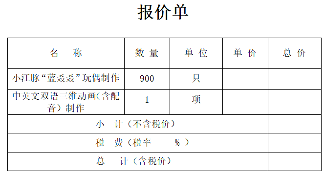 2.采购项目名称:小江豚“蓝叒叒”玩偶及中英文双语三维动画(含配音)制作项目(需取得“蓝叒叒”及相关形象版权,版权联系:13773667348)