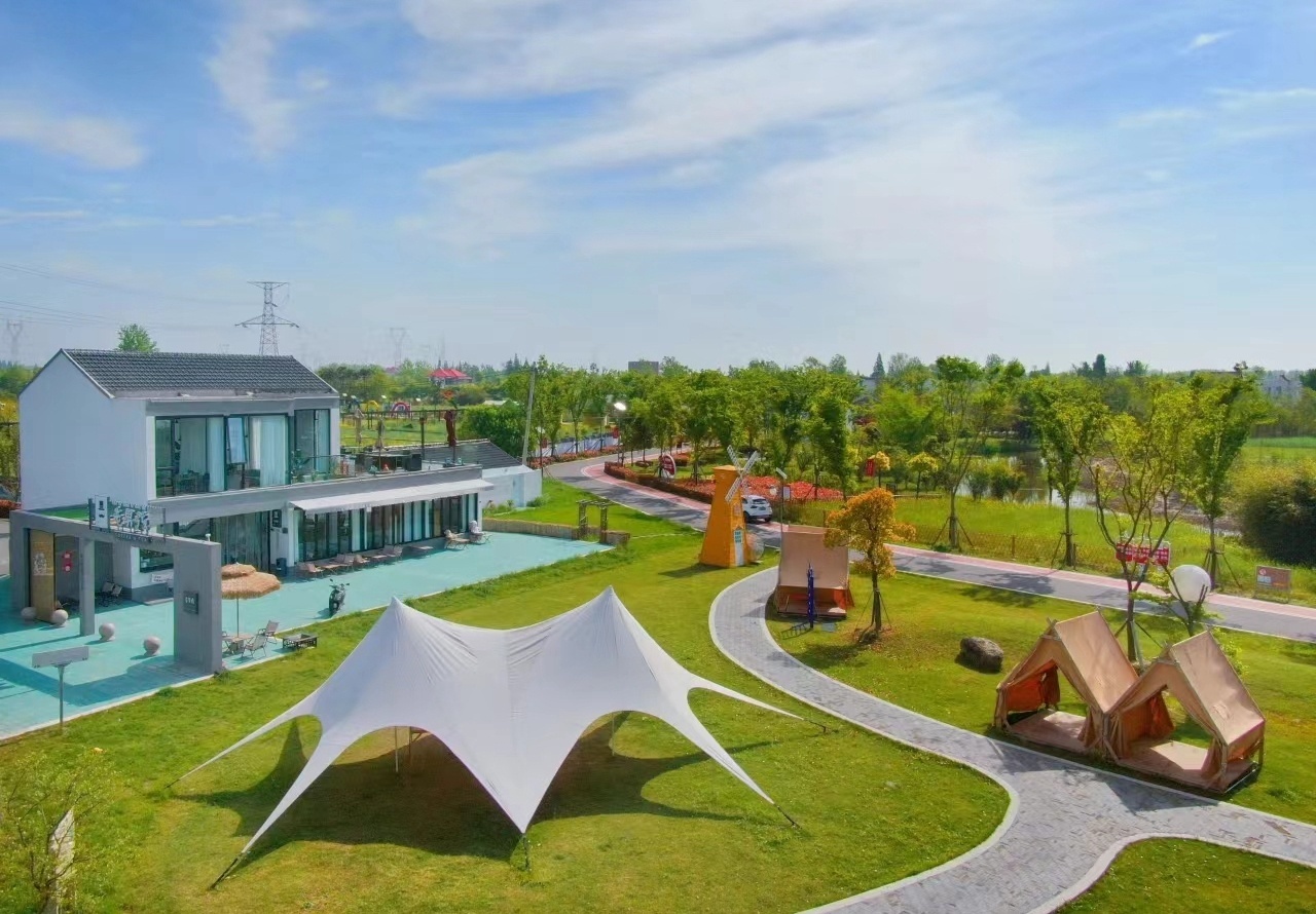 7月20日,顺着渔湾水道再往前,一座崭新的咖啡屋矗立在田园间,门口停放着数辆造型炫酷的摩托车,屋前的大草坪上露营帐篷一字排开,让这古朴的乡村增添了一些现代气息。跨进大门,一股浓郁的咖啡香扑面而来。