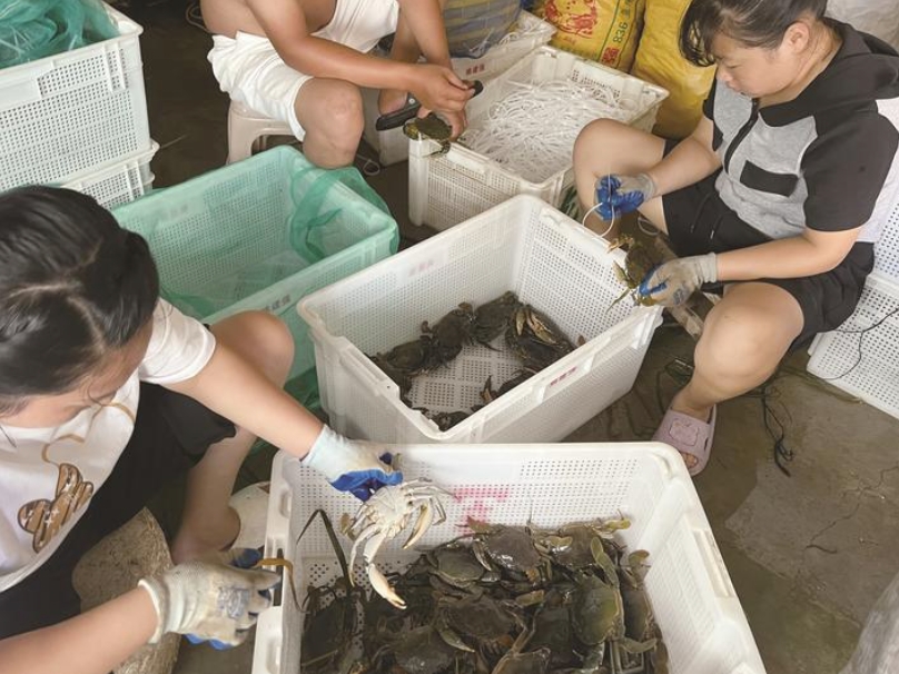 香辣蟹、肉蟹煲、海鲜粥……青蟹的烹饪方式多种多样,清蒸后更是香气四溢、色泽诱人,拨开蟹壳,膏比金沙的蟹黄,脂似白玉的凝脂,回味清甜的蟹肉,色、香、味俱全,让人垂涎欲滴。张义春告诉记者,他池塘里的青蟹一直能够供应到10月份左右。“预计后期大量上市后价格会小幅下降,但具体还得看市场行情。”记者 陆薇