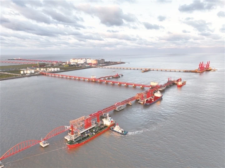 作为如东向海发展的桥头堡,洋口港“产业港、能源岛”建设正迸发出澎湃活力与蓬勃脉动。坐落于阳光岛上的中石油江苏LNG接收站是华东地区重要的能源枢纽,今年以来,已累计接卸61船LNG,这些“海气”在管道外输和槽车外运“双轮驱动”下,全年可支持江苏省约30%的天然气供应。