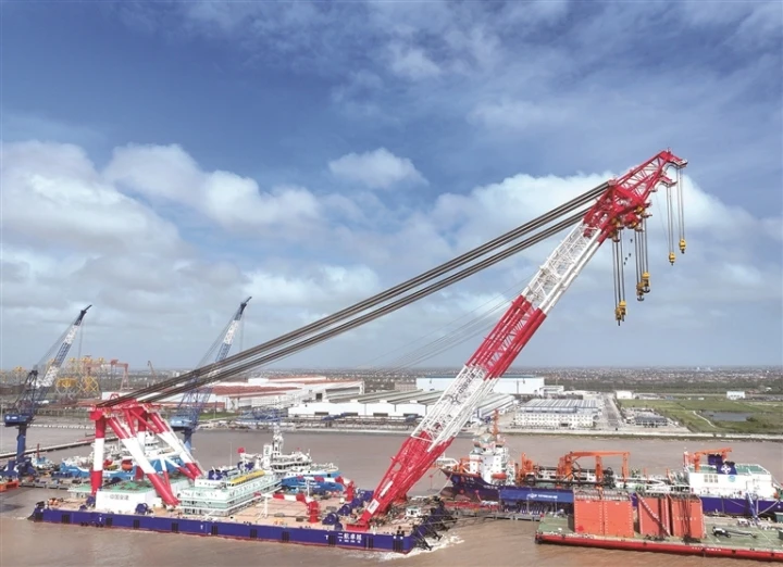 昨天,上海振华重工为中交二航局建造的5500吨双臂架变幅式起重船“二航卓越”,在振华启东海工码头举行交船仪式。