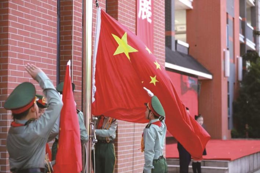 城西小学举行“党员、团员、队员共升一面旗”升旗仪式,用独特的方式庆祝新中国成立75周年。孩子们手举小国旗,簇拥在操场上,展现了积极向上、拼搏奋进的精神风貌和对伟大祖国的热爱与祝愿。