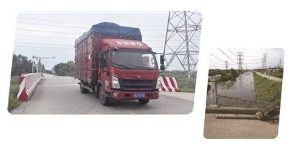 随后,规建局会同养管单位立即在桥的两侧设置了混凝土砌起路障和警示标志,仅供电瓶车和村民应急通过。在桥头,也设立了警示通告:前方险桥,实行限载、限速。