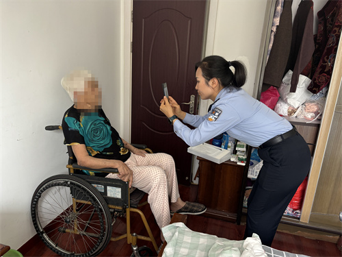 当天下午,民警便带着相关采集设备如约来到李先生家中,察觉到李先生的母亲有些拘谨,于是便主动与其亲切交谈,热心帮助其整理衣服、发型,耐心引导其正坐,最终采集到合格的人像图片。