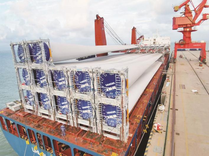 近日,海门港新区东灶港口公司圆满完成“维斯塔斯(VESTAS)日本线HiBiKi塔筒”项目首批15件货物的出运任务。该项目为东灶港口公司开港以来最大规模风力塔筒重大件作业项目,涉及3段3编组风力发电机塔筒(海上9.5MW),共计75件,总价值高达1.76亿元。