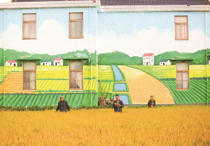 10月30日,如皋市城南街道新华社区,田园种植与村居墙绘相映成景,构成一幅生态优、风景美的新农村画卷。CFP供图
