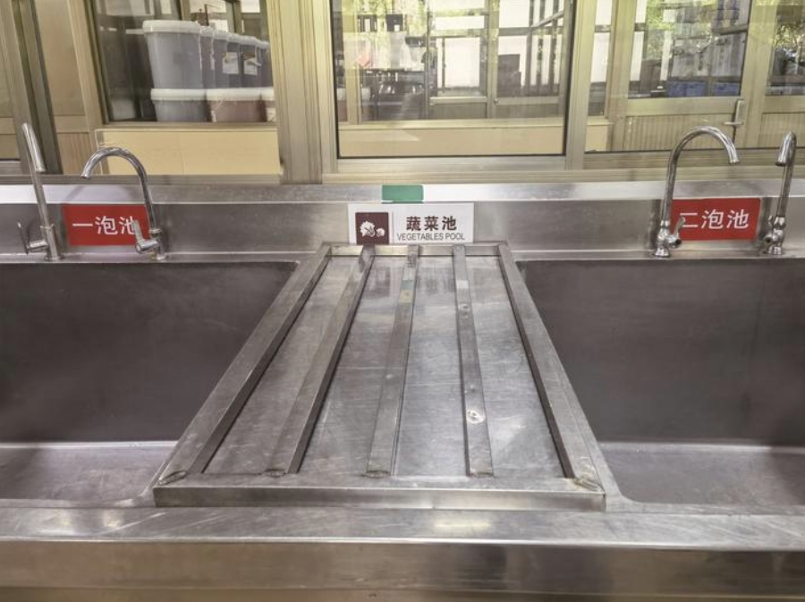 每天早上6点30分,食堂分管主任、司务长、厨师长、教工代表、中学家长代表、小学家长代表准时在食堂验菜区一起参与验菜。验菜代表对当天所有的肉类、禽类、水产类、蔬菜类、豆制品等原材料进行采购证票检查、感官测试、数量统计等方面的检验,所有人一致通过后即可将原材料验收入库。“每天这么多人参与验菜,每个人都有‘一票否决权’,但凡有哪里有问题,我们都会要求供货商立刻调换。”李建说。