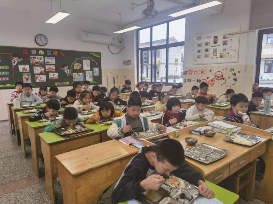 孩子们正在教室里享受当天的美味午餐。