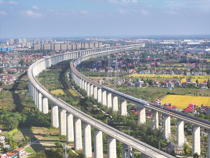 10月30日,动车组行驶在沪苏通铁路线路上。据中国铁路上海局集团有限公司新长车务段昨天提供的数据,今年前10月,沪苏通铁路南通西站到发旅客538万人次,南通站到发旅客667万人次。沪苏通铁路运营4年来,便利了沿线群众出行,缩短了上海与南通及苏北地区的时空距离,有力助推长三角一体化发展。 记者 许丛军摄