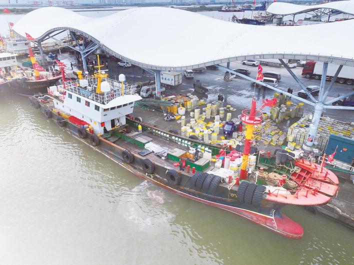 10日,启东吕四渔港码头,渔民们忙着卸运、分类处理刚刚到港的海产品。据了解,吕四渔港水域面积95万平方米,码头岸线7663米,可停泊2300艘渔船。渔港常年从业人员3万多人,年渔获物卸货量达25万吨,占江苏全省产量的1/3,年创造渔业经济总产值超51亿元。 记者 许丛军摄