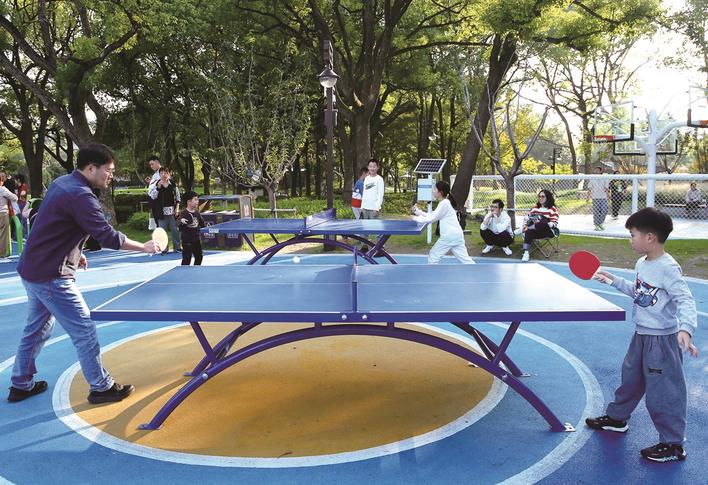“文峰公园重新开放后,来打乒乓球、打篮球的市民不少。”崇川区乒乓球协会副秘书长陈琪告诉记者,文峰公园内篮球架、乒乓球台、智慧健身设施齐全、布局好,为市民带来一个全新的休闲娱乐空间。