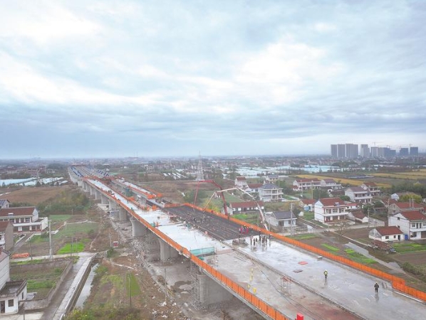 昨天,经过连续15个小时的施工,启东西站双线夹渡线道岔连续梁顺利浇筑完成,标志着由中铁上海工程局承建的沪渝蓉高铁沪宁段启东西站道岔连续梁全部浇筑完成,进一步畅通架梁通道,为后续推进车站施工按下了“加速键”。 记者 许丛军摄