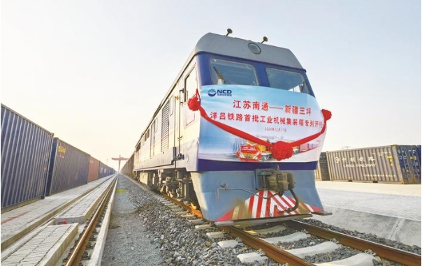 昨天,由洋吕铁路东灶港站发至新疆三坪站的首批工业集装箱专列开行。洋吕铁路开行半年来,沿海集团铁路公司抢抓共建“一带一路”机遇,发挥铁路物流枢纽+供应链物流优势,将先进技术和装备源源不断地输送至新疆等中西部地区。