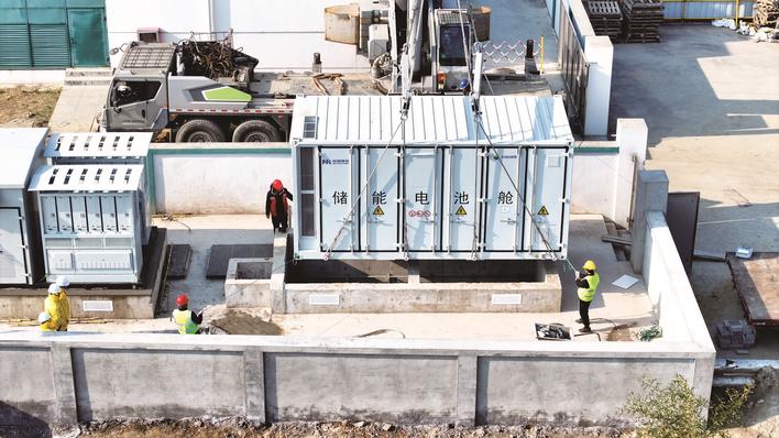 昨天,施工人员在海安高新区内的15兆瓦新型储能电站里进行吊装作业。这一“超级充电宝”项目投产后,能有效提升区域电力系统调峰和调压等能力。 顾华夏摄