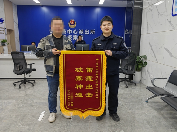 12月19日,刘先生专程从北京赶来,将两面书有“雷霆