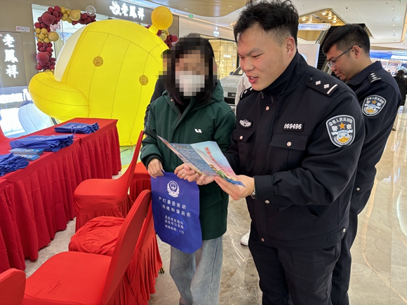 上月29日下午,启东市公安局汇龙镇中心派出所扎实开展“冬季行动”宣传活动,深入启东吾悦广场摆摊设点,销售平安“秘笈”。