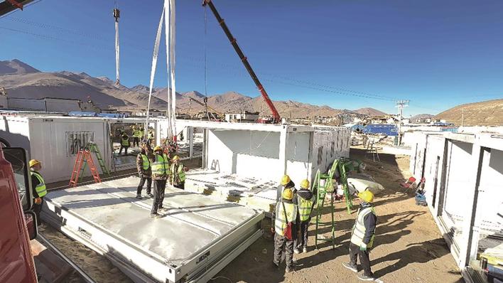 昨天,江苏启安建设集团西藏分公司派出的应急救援队“兵分两路”,分别在西藏日喀则市定日县曲洛乡措昂村、长所乡古荣村赶工,继续安装集装箱房屋,力争以最快速度让更多受灾群众住上“新家”。