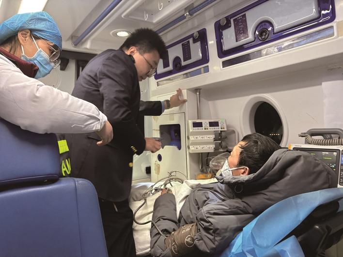 列车停稳后,车站工作人员合力将刘先生护送上救护车。途中,救护医生询问是否有人陪同,倪伟当即表示:“他的家人不在,我们就是他的家人!”随后,倪伟和客运值班员曹涵滔一同前往医院陪护,协助刘先生进行救治。