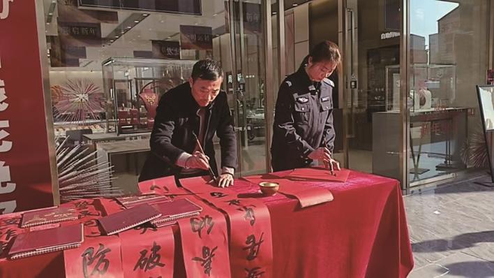 连日来,启东市公安局吕四港镇中心派出所民警、辅警走进辖区店铺书写反诈春联,传递新春祝福,拉近警民距离,庆祝第5个中国人民警察节,持续提升群众识诈、防诈“免疫力”。 记者张亮 通讯员吴睿姝