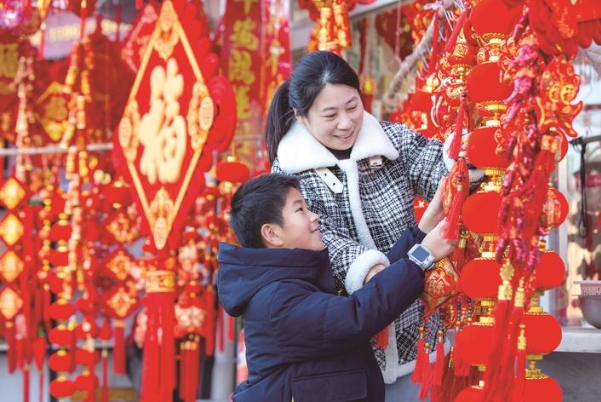 昨天,市民在通州区金沙街道一节庆饰品店选购年货。春节将至,年味渐浓。节庆饰品店内大红的灯笼、对联、“福”字高高挂起,呈现出红红火火的景象。市民们忙着采办年货,开开心心迎接新春佳节的到来。通讯员翟慧勇