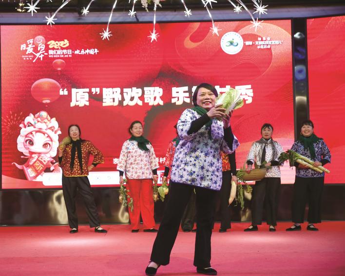 昨天,如皋市下原镇陈桥村“小村春晚”精彩上演,村民们表演农民风采秀《喜获丰收》。春节将至,各地举办“小村春晚”,不仅为村民们带来了一场场文化盛宴,更成为推广当地文化、传承民俗风情的重要平台。CFP