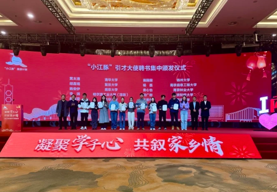 在南通的人才工作中也畅游着一群“小江豚”。他们分布在全国53个城市、75个重点高校,作为美好南通的使者,发挥着以才引才的重要作用。当天,经各县(市、区)推荐出的首批10位金牌“引才小江豚”,登台接受聘书。“南通有宜居的环境、幸福的生活,也有优厚的人才环境、广阔的发展前景,我会努力将这些闪光点传扬出去,让更多人全面地认识南通。”首批金牌“小江豚”之一、南京大学信息管理学院研究生一年级学生施俊伊说。