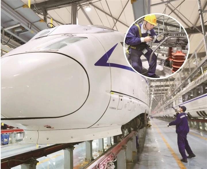 22日晚11时,记者走进位于崇川区幸福街道辖区的南通动车所,在近一个小时的时间里,4组动车组先后驶入检修库,3组完成维修得干干净净的动车组驶出检修库。据地勤机械师卢坤宇介绍,春运以来,夜晚动车组检修数量和存车场过夜存放动车数量增长迅猛,夜晚日均检修动车组16列18组,存车场存放动车组31列38组。相关岗位各负其责、协同保障助力春运。