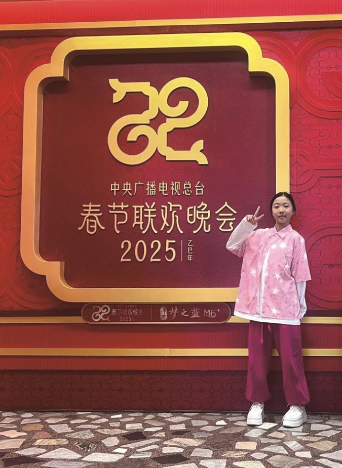 在这群年轻的舞者身影中,有一个11岁的南通女孩周梓萌,是如皋市安定小学六年级的一名小学生。从小对舞蹈情有独钟的她,第一次登上央视春晚的舞台。