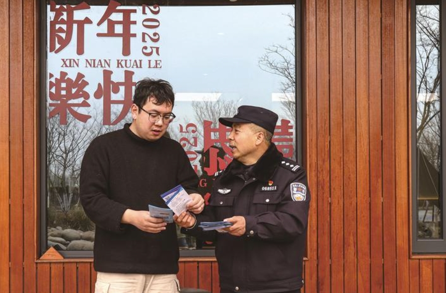 沃农生态园复工开园,他赶到奇异莓种植田头,向绑枝的工人们挨个进行反诈宣传;永临汽渡车流高峰时段,他前往码头警务站,配合崇启两地公安的同志们,检查来往车辆是否携带违禁品;在滨江路,他带领协警沿着江堤步巡,严防春节期间非法捕捞……
