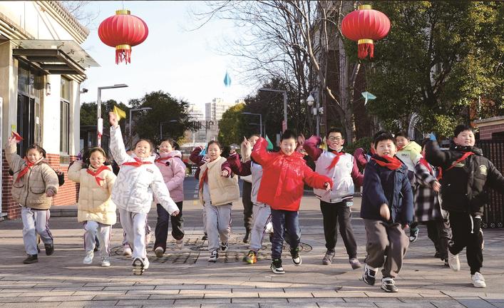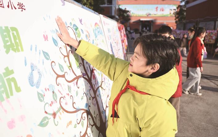 “希望新学期成绩进步!”“我要交到更多好朋友!”“祝家人身体健康、天天开心!”……陆洪闸小学的孩子们用稚嫩的笔触在彩纸上写满愿望,折叠成纸飞机并粘贴在展板上。百余架“心愿飞机”很快铺满了整个展板,在蓝天白云下振翅欲飞,用满满的仪式感拉开了新学期的序幕,也点燃了同学们对新学期的期待和热情。