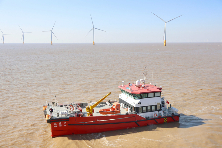 当天早些时候,国电投南通新能源公司运维中心检修维护班组的15人和部分外包运维人员已分乘三条运维船,前往公司所属的三个风电场开展作业。