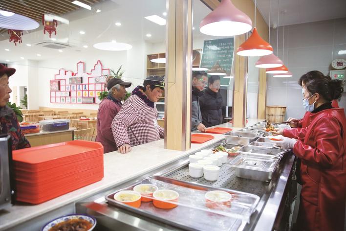 23日,如皋市城南街道,居民在刚刚对外营业的建设社区“邻里爱心食堂”挑选菜品,享用惠民午餐。 CFP供图