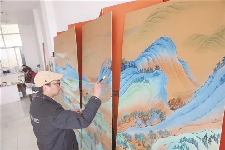 昨日,在海门四甲镇南通市初艺工艺品有限公司,农民画工忙碌创作外销的农民画。该镇现有农民画工上百人,均为本镇农民,农民画销往国内各地和德国、印度、美国、新加坡等国家。 记者 许丛军摄
