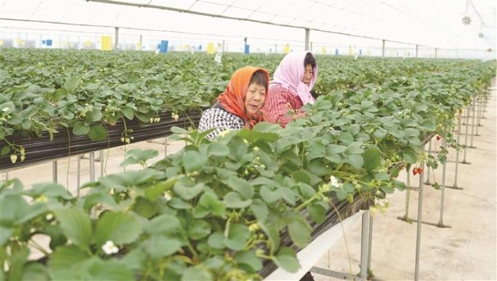 昨天,海安市高新区都市农业园荣诚有机种植智能大棚内,工人正在管护无土栽培的草莓、蓝莓。近年来,海安市大力推动农业生产向智能化、数字化、高效化发展,积极推广绿色有机种植技术,促进农业提质增效、农民增产增收,助力乡村振兴。 周强摄
