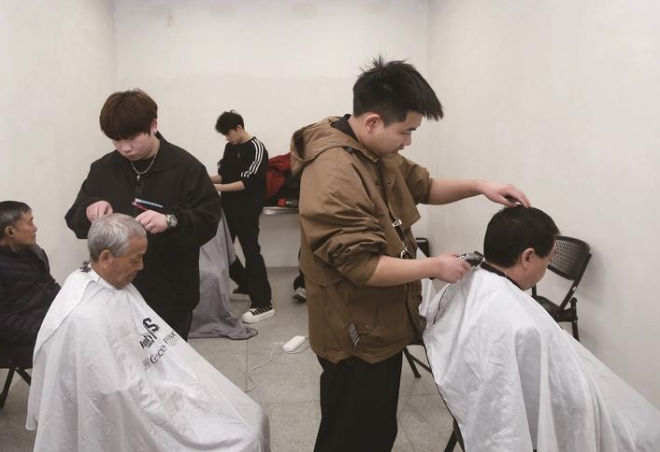 昨天,南通轨道交通推出“二月二·龙抬头”公益理发活动,邀请专业理发师在1号线友谊桥站站厅为50名乘客免费理发。 记者尤炼