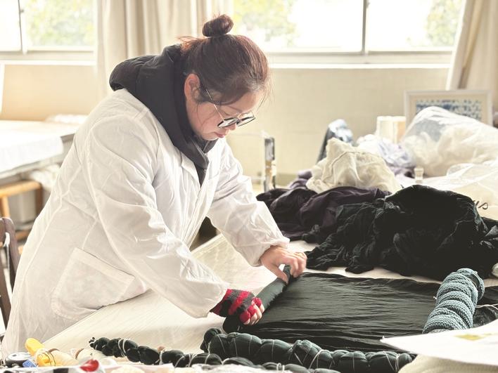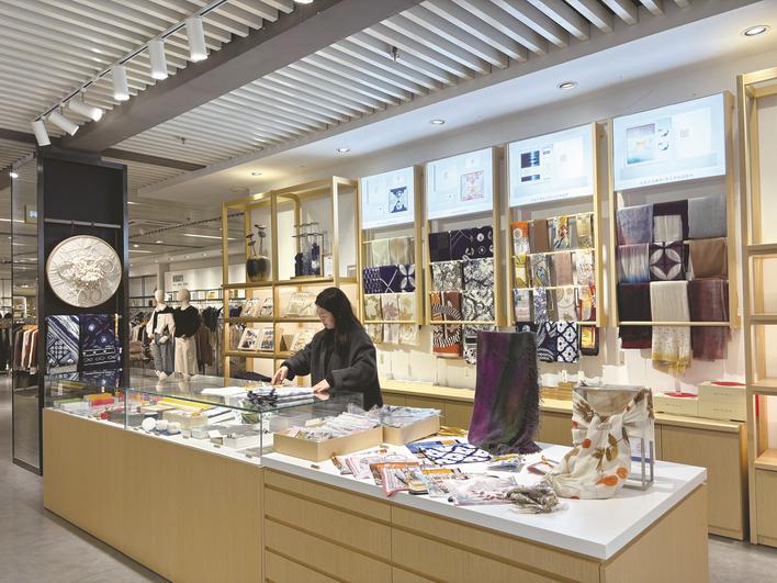 “这是一个融合非遗与时尚的文化IP空间,吸收了现代美术馆的风格,更具时尚感和吸引力。”江苏华艺集团企管中心总经理葛坤锋介绍。场馆内的文创展销区,扎染系列围巾、文具、文化衫等匠心制作,吸引游客将非遗产品“带回家”;沉浸体验区内不断变换的扎染纹样呈现出扎染的无限可能,可触摸的魔屏涵盖了与扎染等纺织技艺相关的潮流时装影像,为行业内外人士提供了一个展示、交流、合作的平台。葛坤锋说:“华艺美学生活空间对内起到保护、传承的作用;对外,既让参观者深刻感受中华优秀传统文化的魅力,又能供专业人士查阅、学习、借鉴,增强自身获得感。”