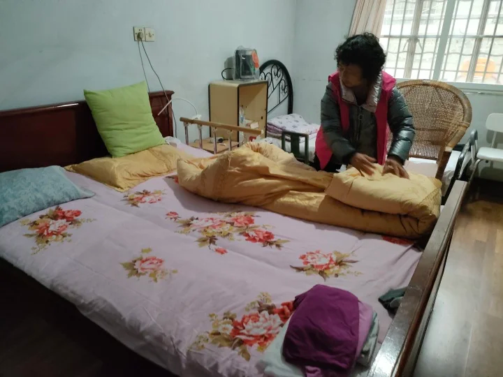 “万嬷嬷,我帮你的裤腰那里改成了松紧带,你试试看行不行?”在李坤武等人的帮助下,万云凤很快穿上了改好的裤子。随后,志愿者们还帮着老人叠被子、打扫卫生。“她们就像我的家人一样呀,每周都过来看我,让我感到温暖。”万云凤笑着说。