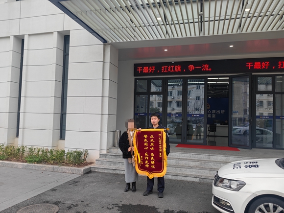顶部3月14日上午,启东市公安局汇龙镇中心派出所收到一面书有“正义卫士 为民解忧,警民同心 反诈先锋”的锦旗。