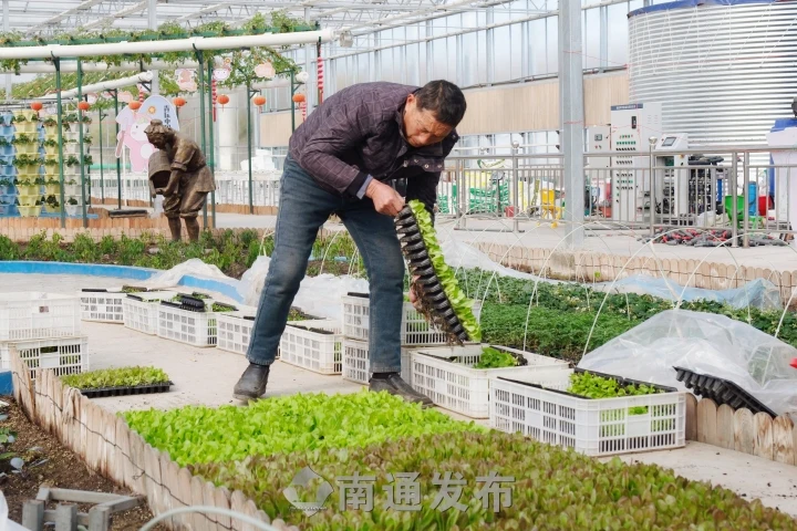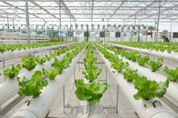 顶部17日,走进位于南通市如东曹埠镇甜水村的南通清甜休闲农业有限公司玻璃温室里,只见翠绿的叶菜倚水而生、五彩的番茄挂满枝头、鲜嫩的草莓香气逼人……20多种蔬果尽情展现着蓬勃的生命力。