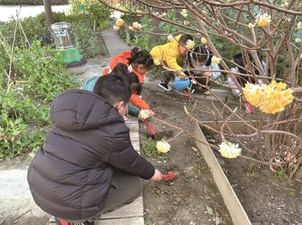 19日,孩子们在校园参与种植活动。当天,如皋市外国语学校附属幼儿园第十一届“苗苗”种植节开幕。孩子们开启了一段亲近自然、感悟生命的奇妙旅程。