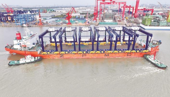 昨天,“振华26”轮装载着万海高雄6台轨道吊缓缓驶离振华南通分公司码头,启航前往高雄港第五货柜中心。至此,振华南通分公司今年一季度共发运轨道吊、轮胎吊等70台港口机械。 记者 许丛军摄
