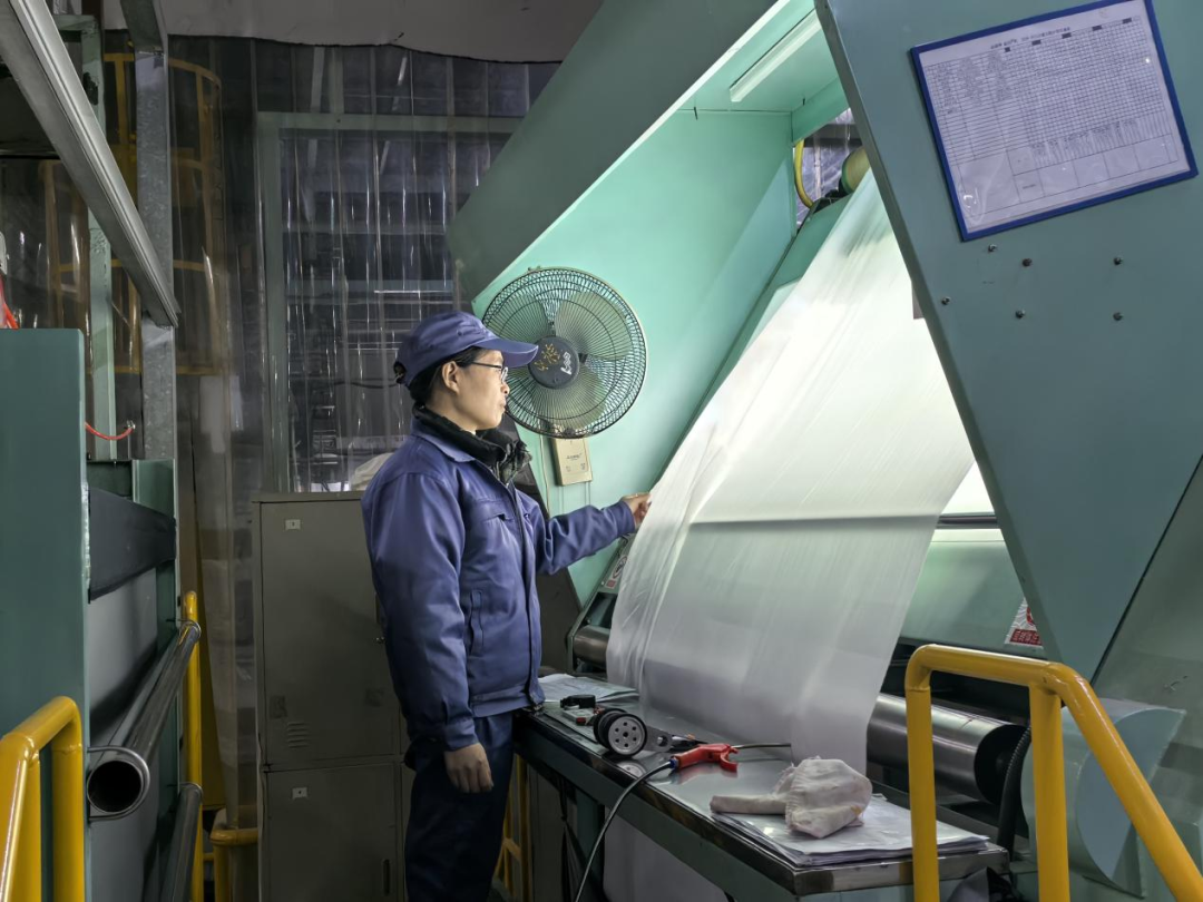 顶部32万立方米,这是南通帝人2024年节省下的用水量,足够让六千户家庭使用一年。近日,走进企业2700平方米的染色生产车间,42台回收系统整齐摆放,每台系统上方都有8—10吨容量的水罐,车间整洁有序,几个负责检测的工人穿着蓝色制服,干净且没有异味。