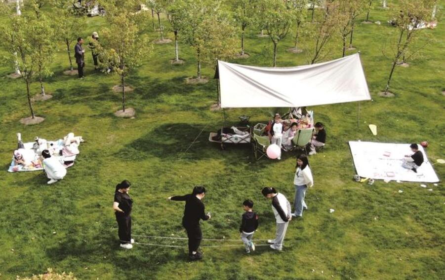 昨天是清明小长假第二天,市民朋友在紫琅花谷搭起帐篷,享受春日时光。紫琅花谷位于南通中央创新区紫琅公园北部区域,通过在丘谷中种植大量的开花植物,打造飘香花海。 记者尤炼
