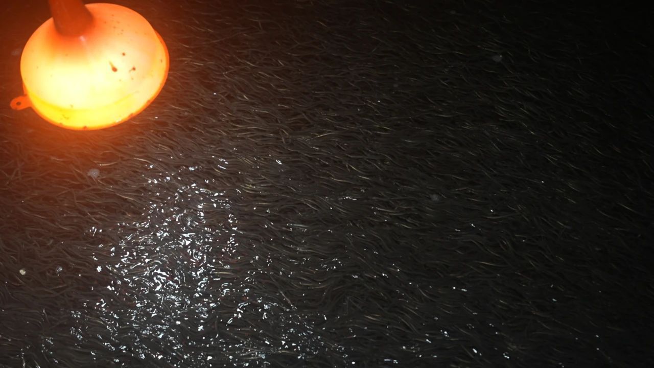 午夜涨潮时分,捕捞船搅碎月光,柳叶状的鳗鱼幼体顺着光柱游来,半透明的躯干里隐约浮着暗红血丝。晨光初现,这批新鲜捕捞的鳗鱼苗出现在如东鑫源水产公司的养殖池里。