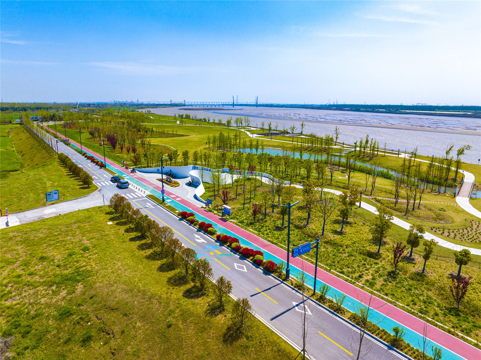 如皋将农村公路建设与生态保护、乡村旅游深度融合,打造出19条旅游观光示范路段和7条省市美丽农村路。长江镇龙游湾沿江生态景观带通过龙游湾路改造,串联起湿地、江滩、彩虹桥等景点,成为市民休闲网红打卡地。平园池村的青莲康寿路以荷塘为底色,融合历史遗迹与现代农业,形成“路在景中、景在路中”的生态画卷。同时,如皋创新“智慧农路”管理系统,通过视频监测、路网调度实现养护全覆盖,并成立全省首家“公路医生进乡村”党建联合体,排查整治安全隐患千余处,守护生态与安全并行。