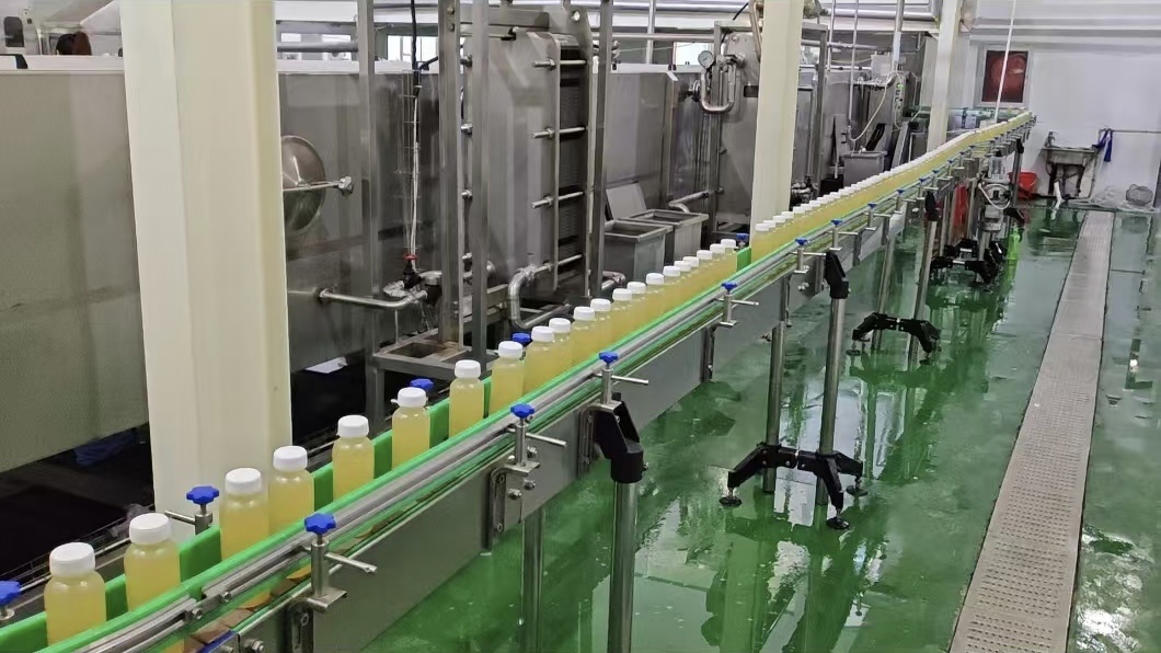 4月22日,走进位于南通启东市南阳镇的江苏佳汇食品科技有限公司,透过无菌操作间的透明玻璃,可见一条现代化的果蔬汁全自动生产线正高效运转。从原料调配到脱气、均质、杀菌,再到罐装、喷淋、冷却,每一道工序都经过精密控制。最终,一瓶瓶色泽鲜亮的果蔬汁完成贴标,等待包装出厂。