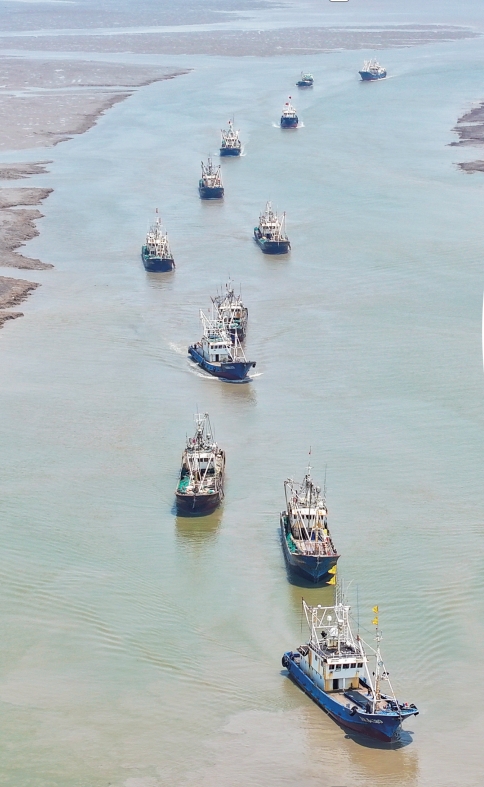 4月30日正午时分,随着如东洋口国家中心渔港船闸闸门缓缓抬升,在外等候多时的渔船鱼贯而入,如长龙般浩浩荡荡驶入港池。“休渔啦,我们的船赶早回来,第一批进港。”苏如渔07169号渔船工人徐亚东说,休渔期间,他们将检修船舶、修网晒网,为4个月后再次出海做准备。